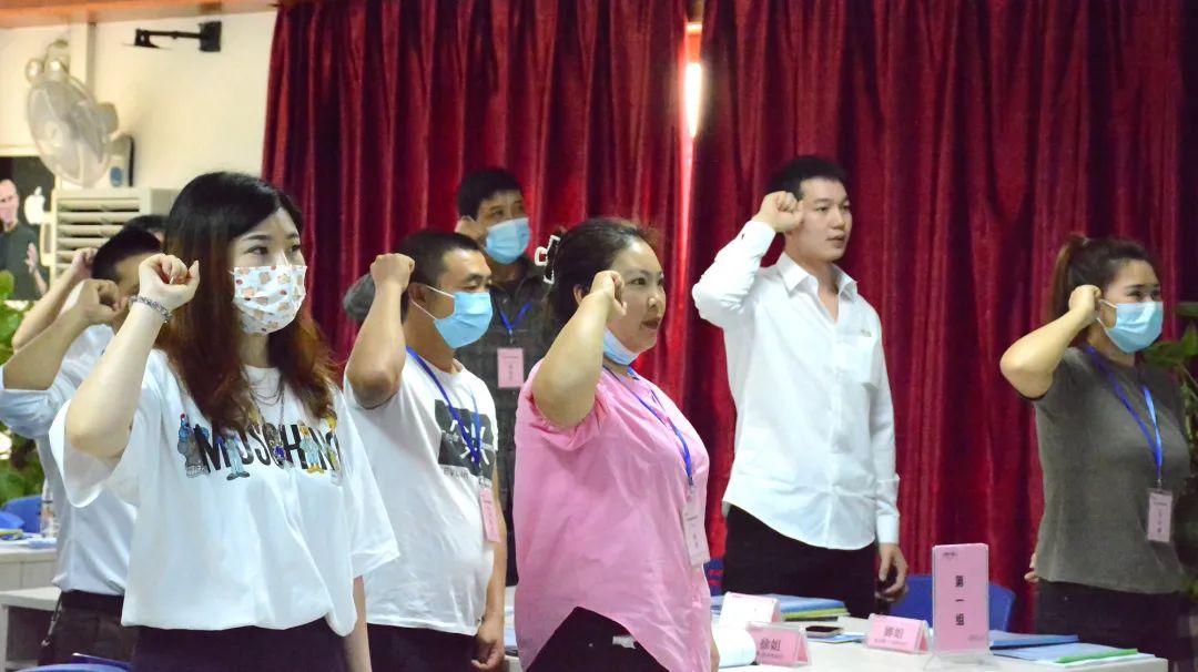 在主持人組織下,學員們進行開班儀式,學員們分成四組戰隊,分別進行團隊展示,各隊以精神飽滿的姿態展現各自風采。大家心中都有一個共同目標:提升自我,更好地服務于客戶,實現業績豐收的新局面 。