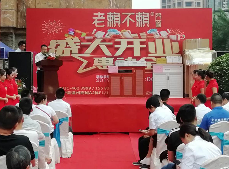 禮炮轟鳴,鑼鼓喧天,開業(yè)慶典在大家的祝福和掌聲中拉開帷幕。嘉賓、代表紛紛上臺致辭,共同祝福老賴不賴長寧店在當(dāng)?shù)刈龃笞鰪?qiáng),成為當(dāng)?shù)?/span>消費(fèi)者“信得過”的品牌門窗店。